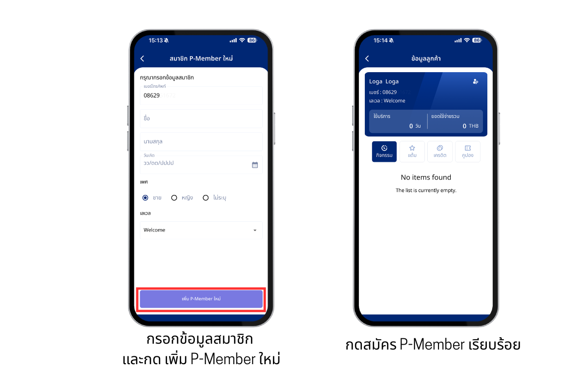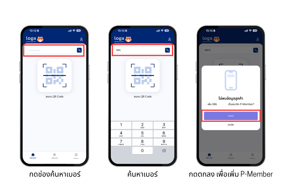สมัครสมาชิก P-member ผ่านแอป Loga Admin
