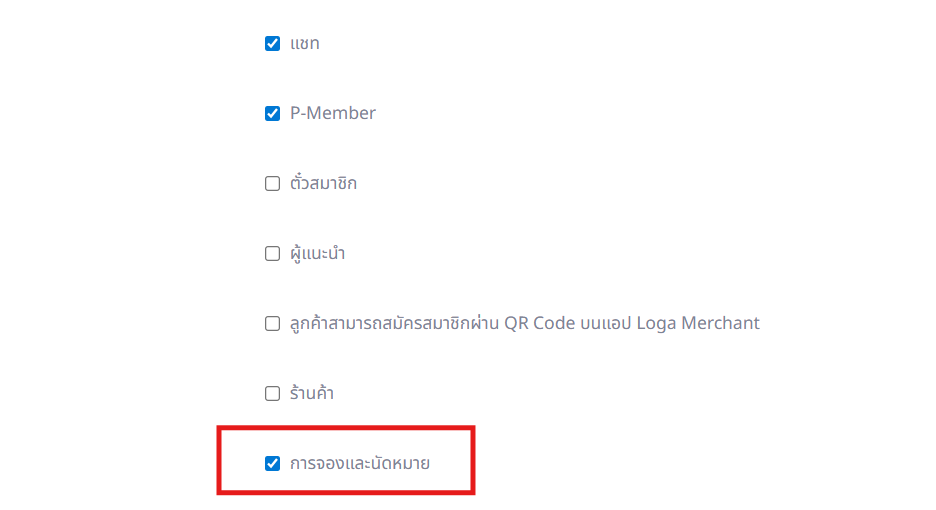 3. ทำเครื่องหมายถูกที่ “การจองและนัดหมาย” (Booking and appointment) แล้วกดบันทึก