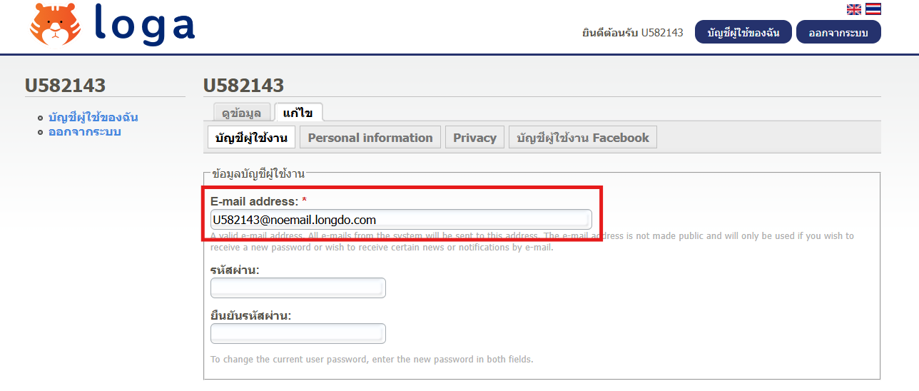 กรณี User มีการสมัครสมาชิกด้วยเบอร์โทรศัพท์ด้วยเบอร์ ผ่านแอป Loga หรือผ่านทาง LINE และต้องการแก้ไขอีเมลเป็นอีเมลของตัวเอง เพื่อต้องการเข้าสู่ระบบด้วยอีเมล หรือ ต้องการเพิ่มอีเมลเพื่อเป็นแอดมินของทางร้าน