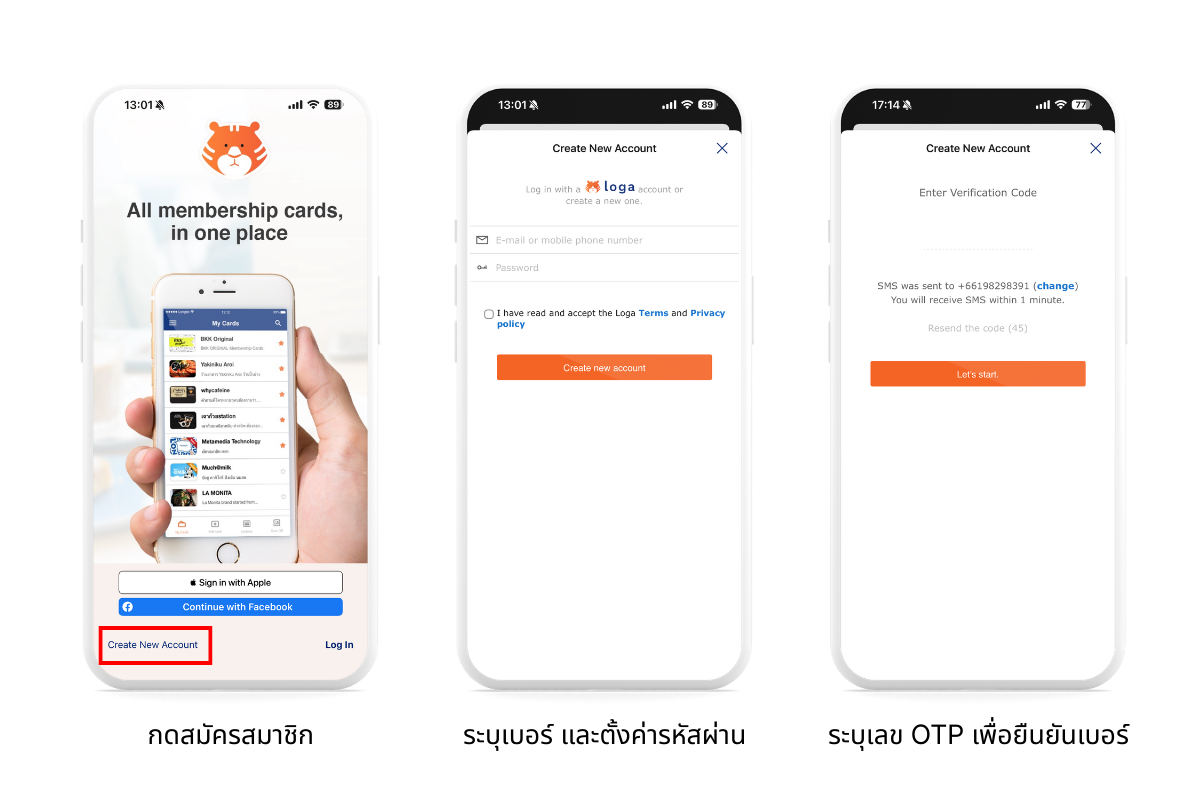 ขั้นตอนการสมัครสมาชิกผ่านแอปพลิเคชัน Loga