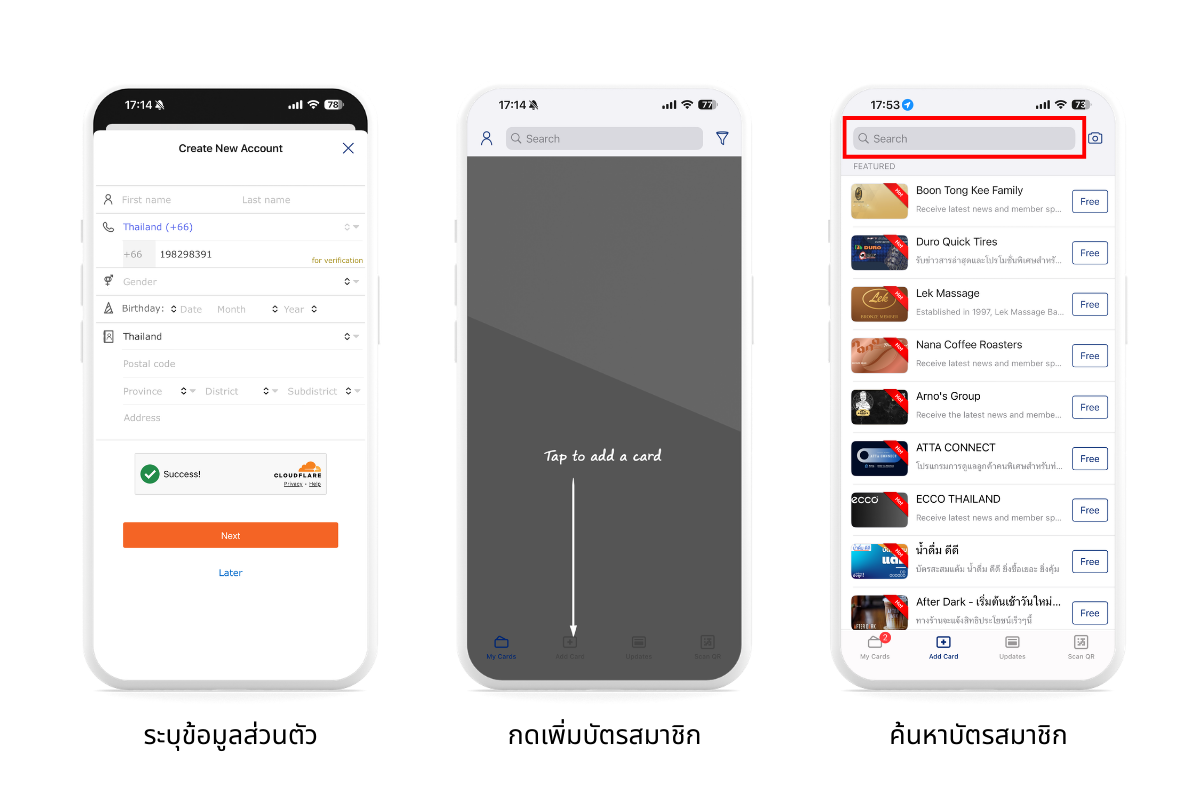 เมื่อลูกค้ามีการสมัครสมาชิกด้วยเบอร์ที่เคยสมัครเป็น P-Member และสมัครสมาชิกผ่านแอปภายหลังด้วยเบอร์เดียวกัน ข้อมูลสมาชิก P-Member จะกลายเป็น Online Menber ลูกค้าจะเห็นข้อมูลแต้มที่เคยได้รับตอนเป็น P-Member
